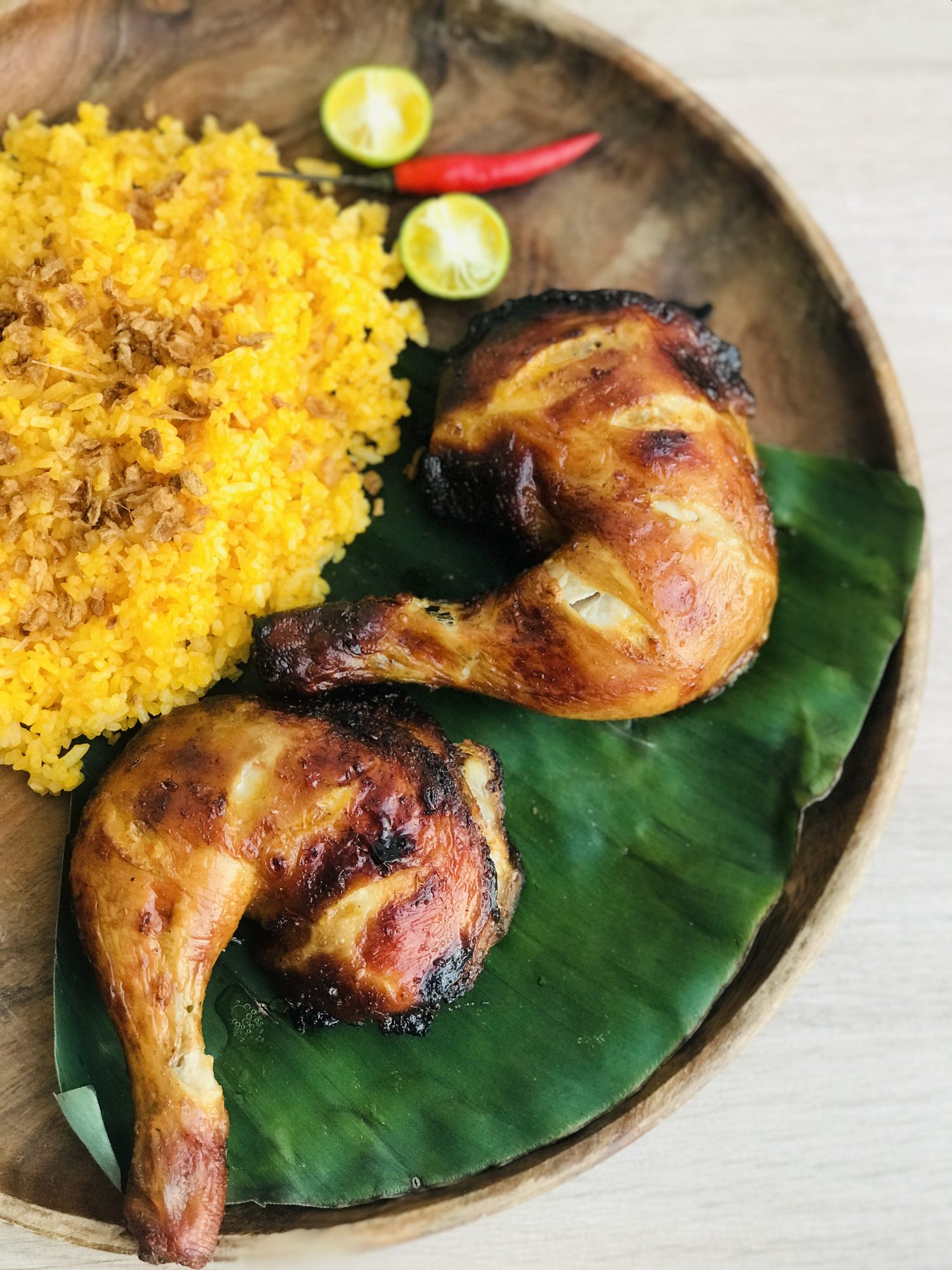 Once cooked, transfer the chicken inasal into a plate and serve with garlic rice. Enjoy!