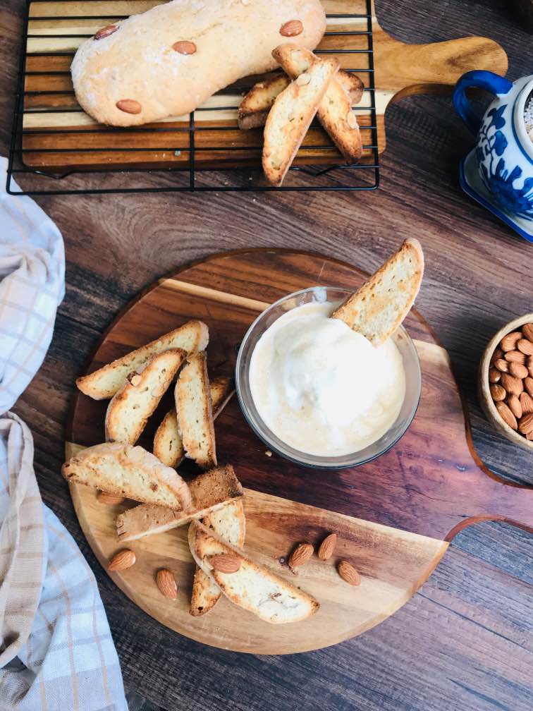 In cup of Vanilla Ice Cream pour down 1 shot of freshly extracted espresso then pair it with the freshly baked biscotti. Enjoy!
