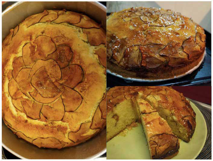 Pour the mixture in the pan and arrange the sliced apples on top.