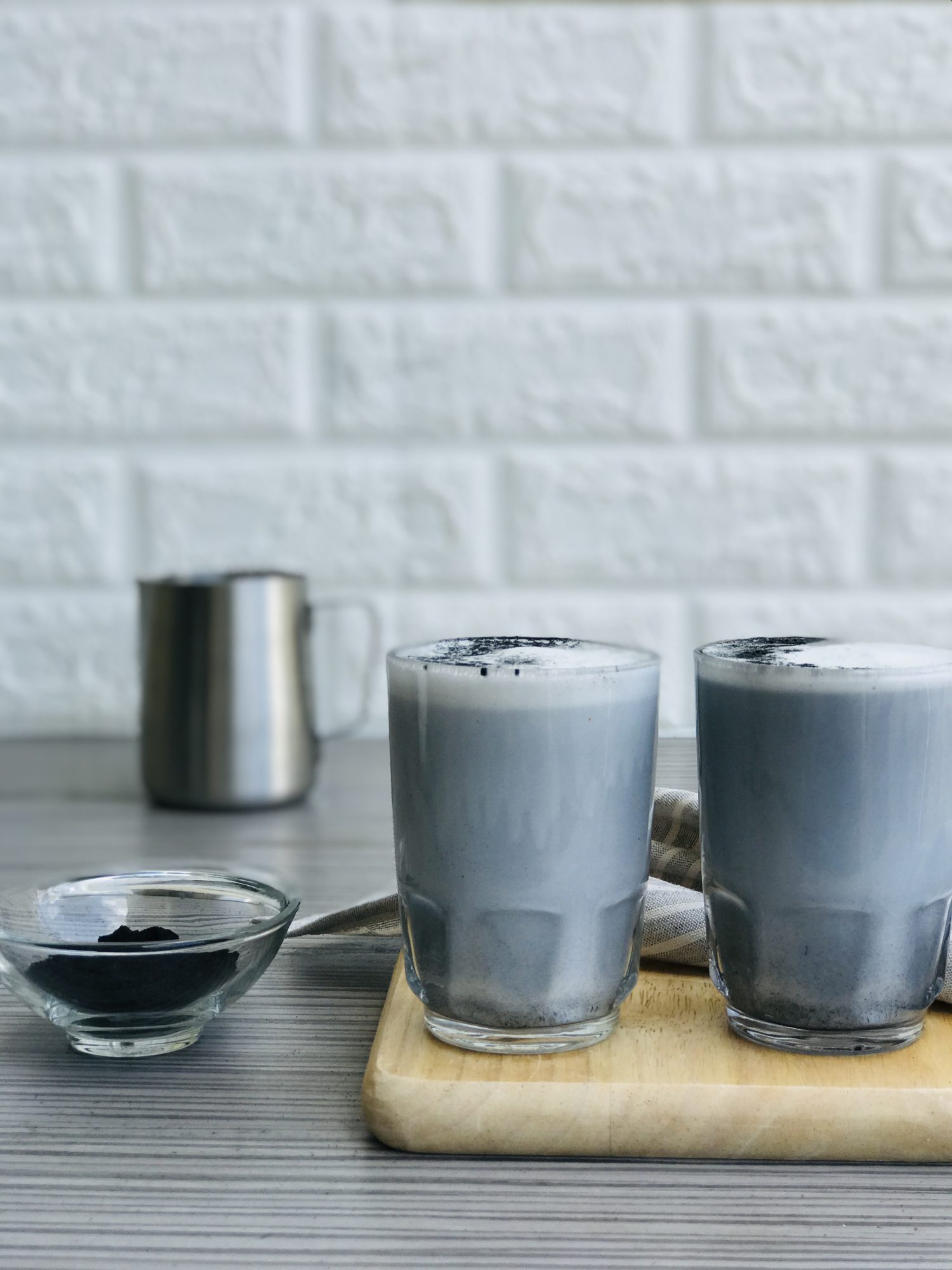Decadently beautiful. Enjoy a cup of this creamy yet detoxifying cup of activated charcoal latte. You only need four ingredients -- Activated Charcoal (food grade), Almond Milk, Honey, and Vanilla Extract.