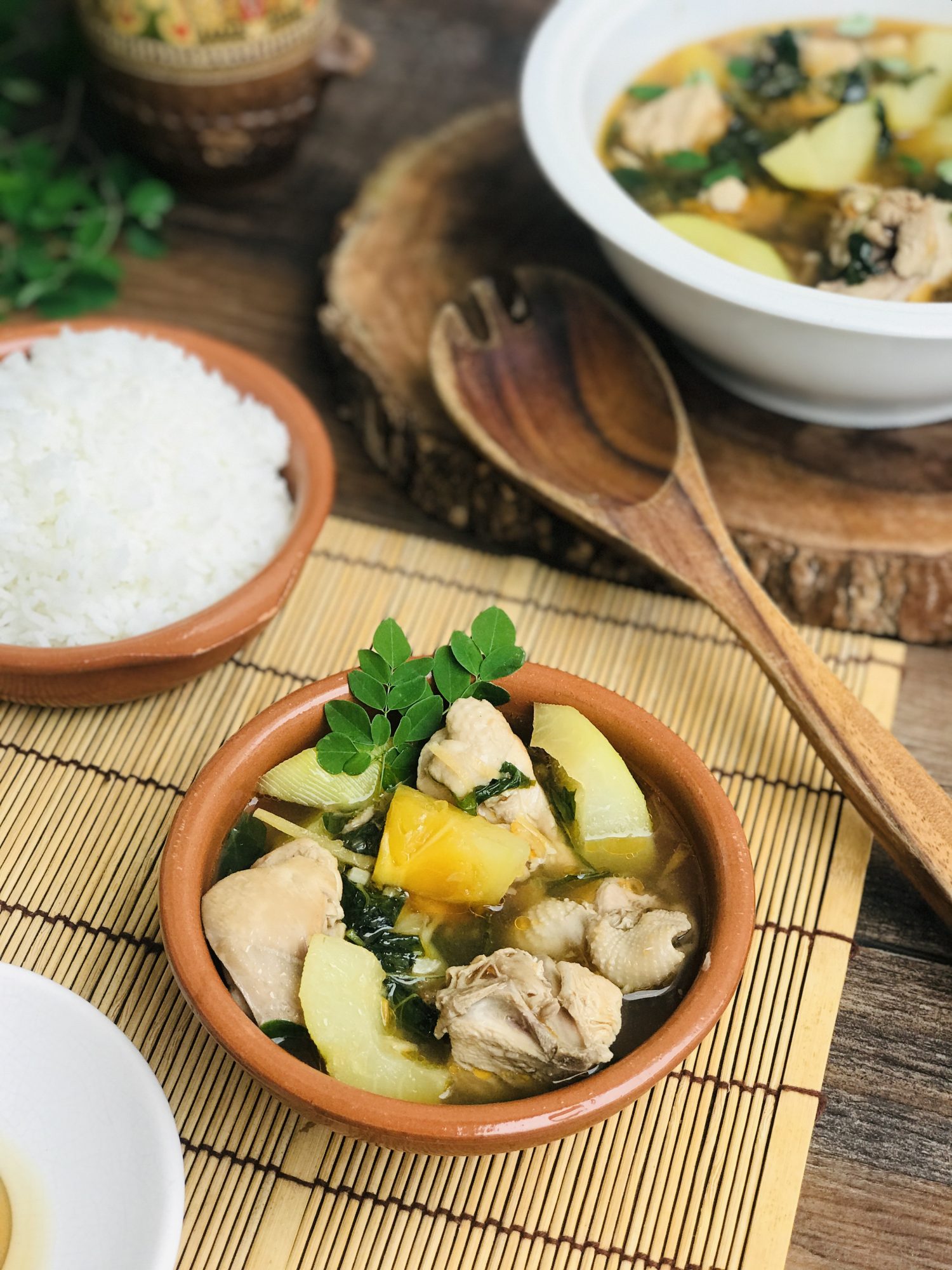 In the last two minutes of simmering add the malungay and chilli leaves. Once done, serve with hot white rice.
