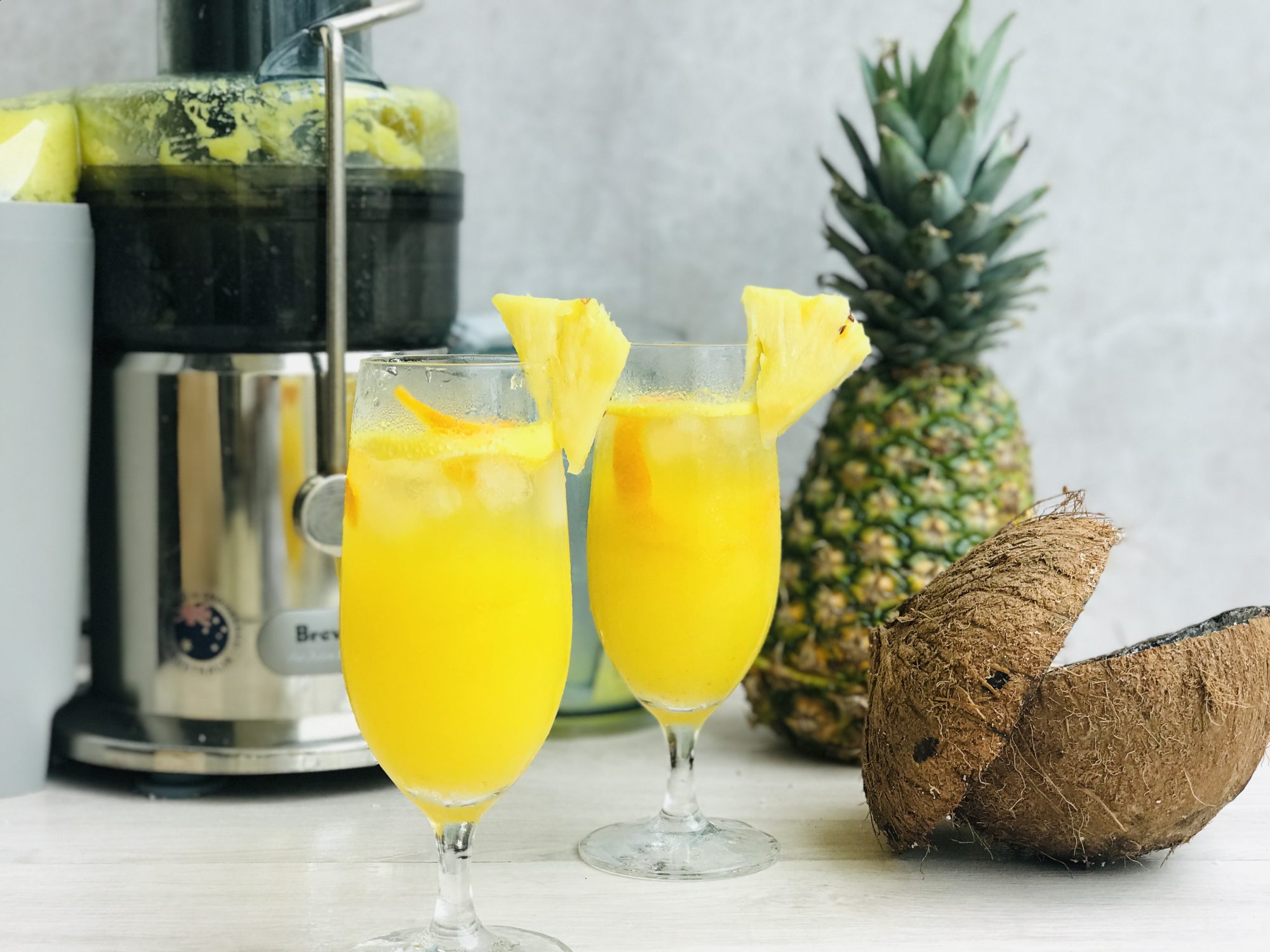 Scoop ice into four tall glasses, add juice mixture, and mix well to combine. Serve immediately.