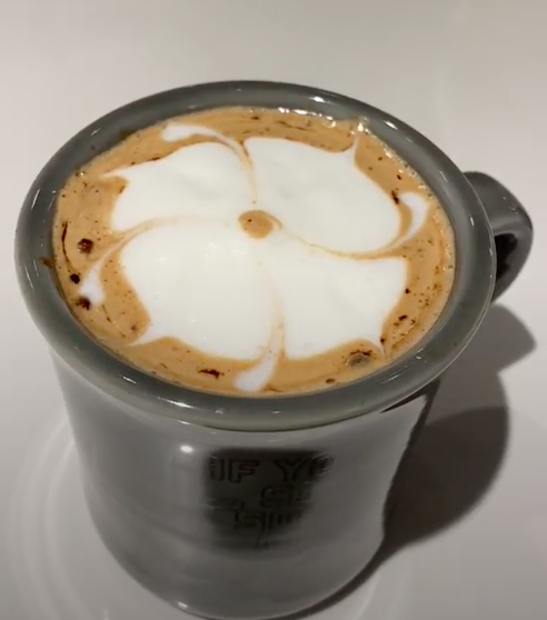 Once the milk is steamed properly, pour into your coffee mixture and serve. Latte art is optional.