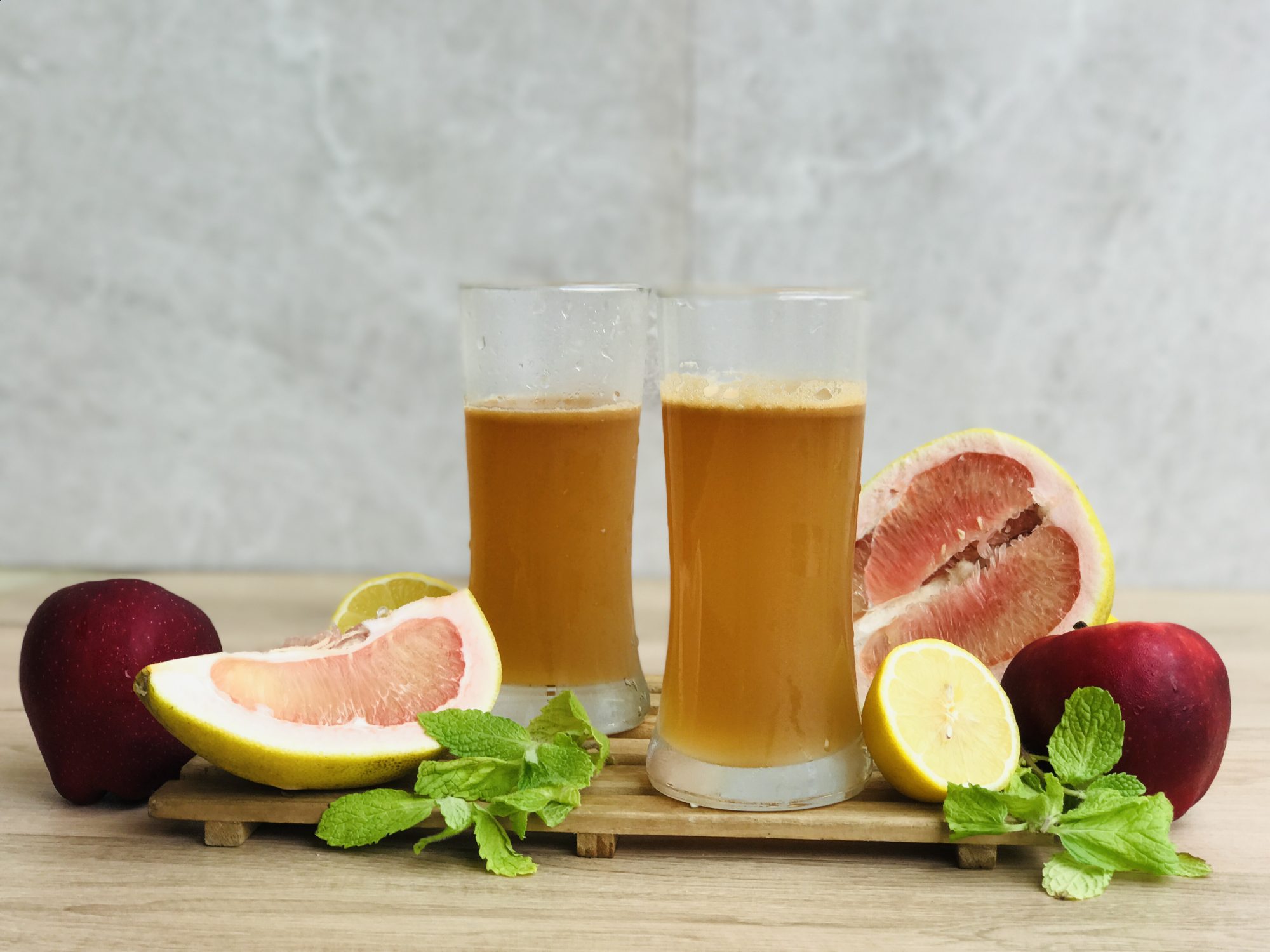 Wash all of the ingredients thoroughly. Peel the pomelo and the lemon.