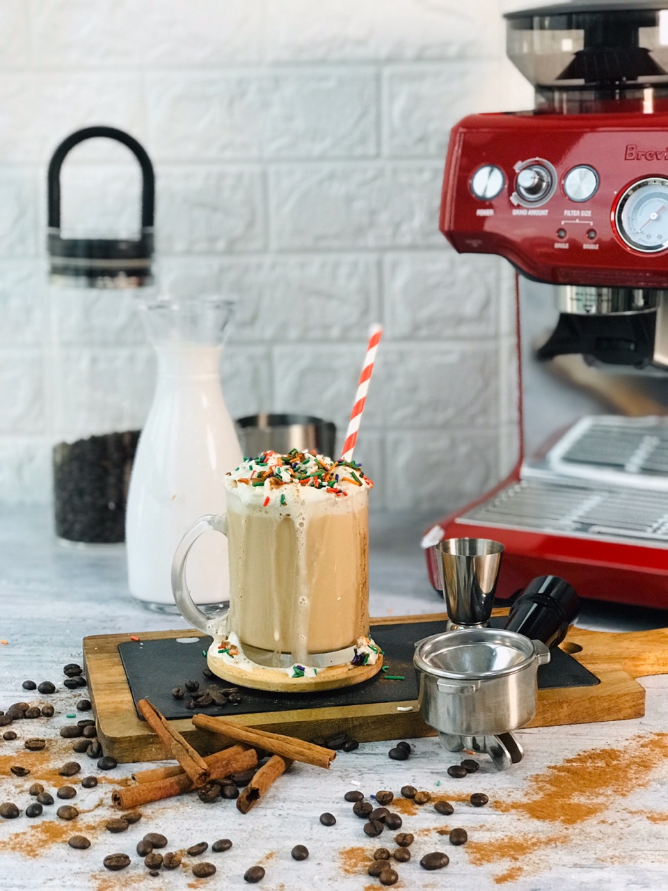 Pour in whipped cream on top and garnish with sprinkles. Enjoy!
