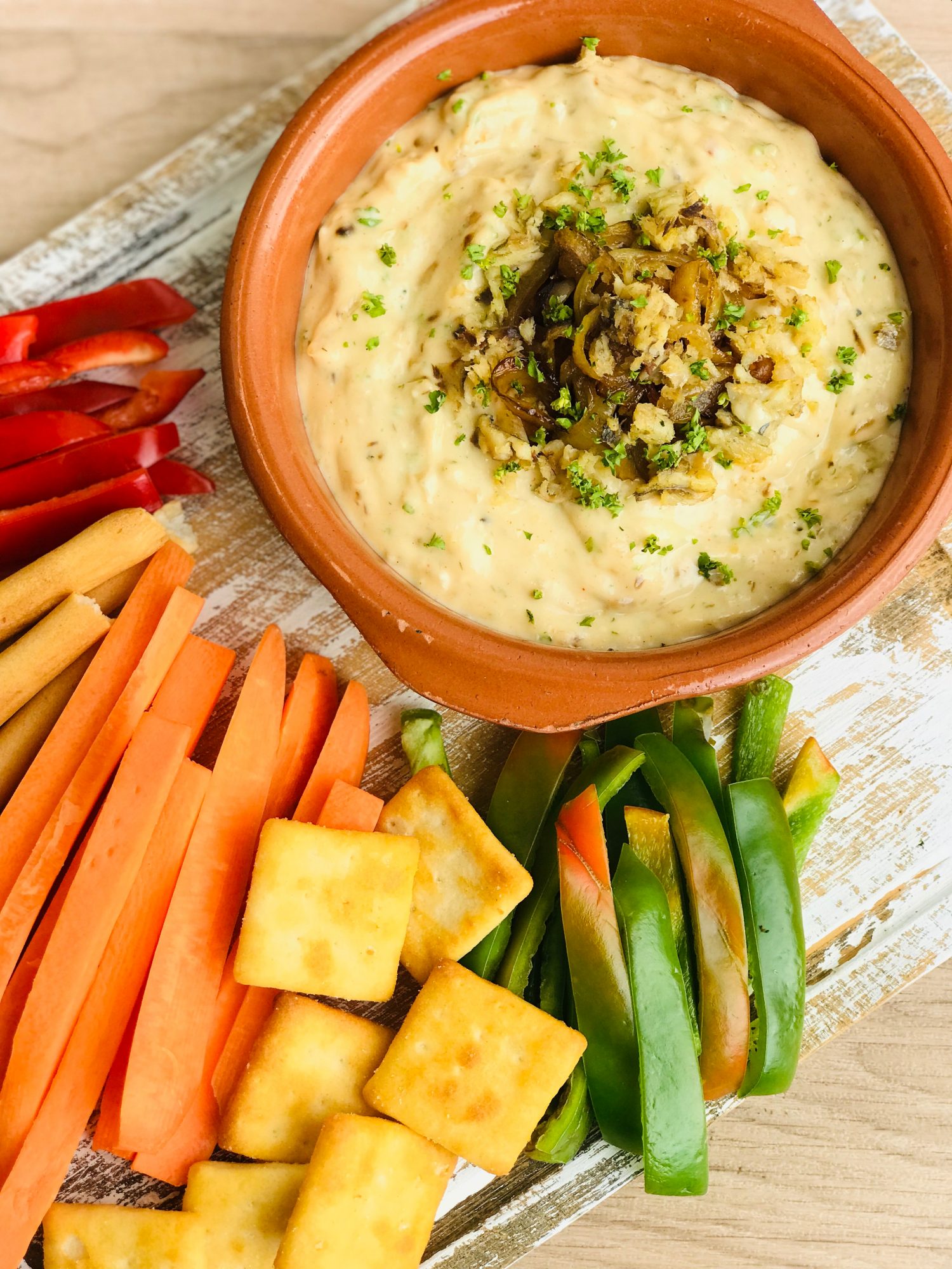 Serve with veggie sticks, crackers or chips. Enjoy!