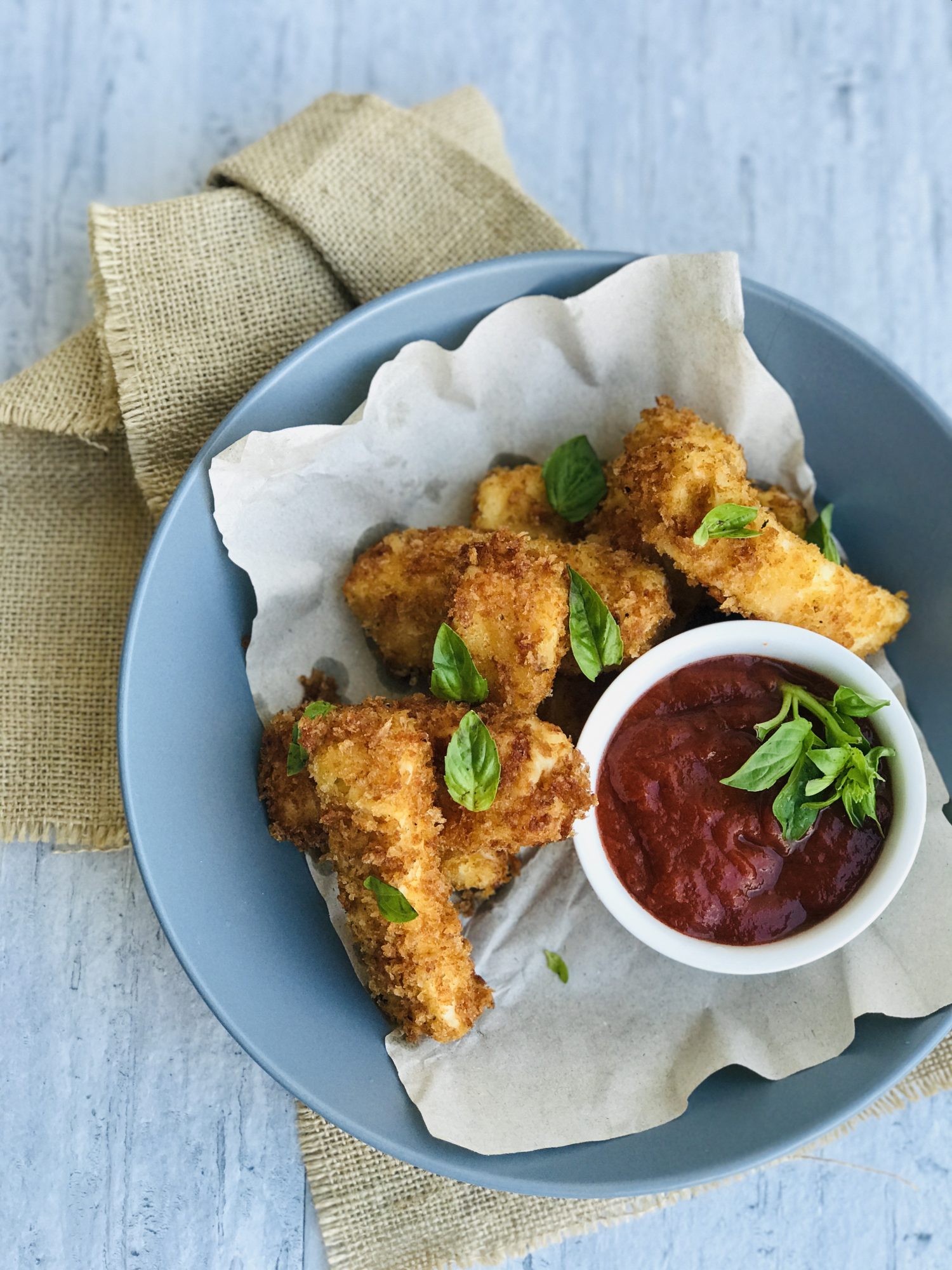 Air Fry the kesong puti sticks for 10 minutes or until brown and crispy.