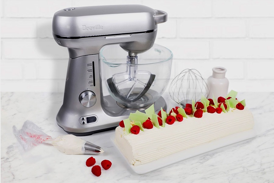Using the Breville Bakery Boss™ with double scraper attachment, combine cake flour, baking powder, salt, sugar for yolk, oil, butter, egg yolks and water. Mix well until no lumps visible.