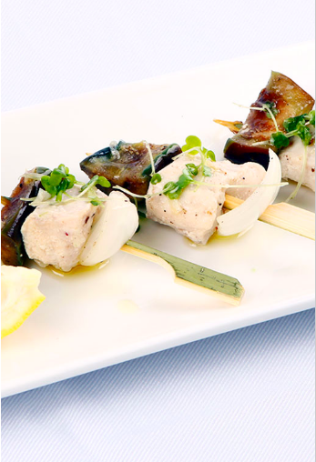 Use 3 inch bamboo skewers, skew in the eggplant, chicken, oinions.