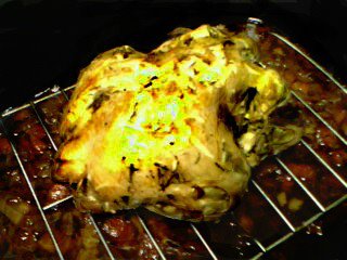 Mix together the butter, salt, pepper, rosemary, thyme, garlic; and, marinade the chicken overnight.