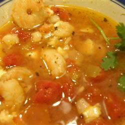 Next, add the tomatoes, green bell pepper, shrimp and cod.