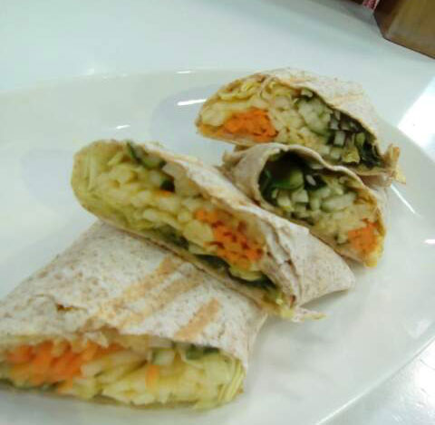 Assemble the wrap: Place all your vegetables in your wrap and drizzle the dressing.